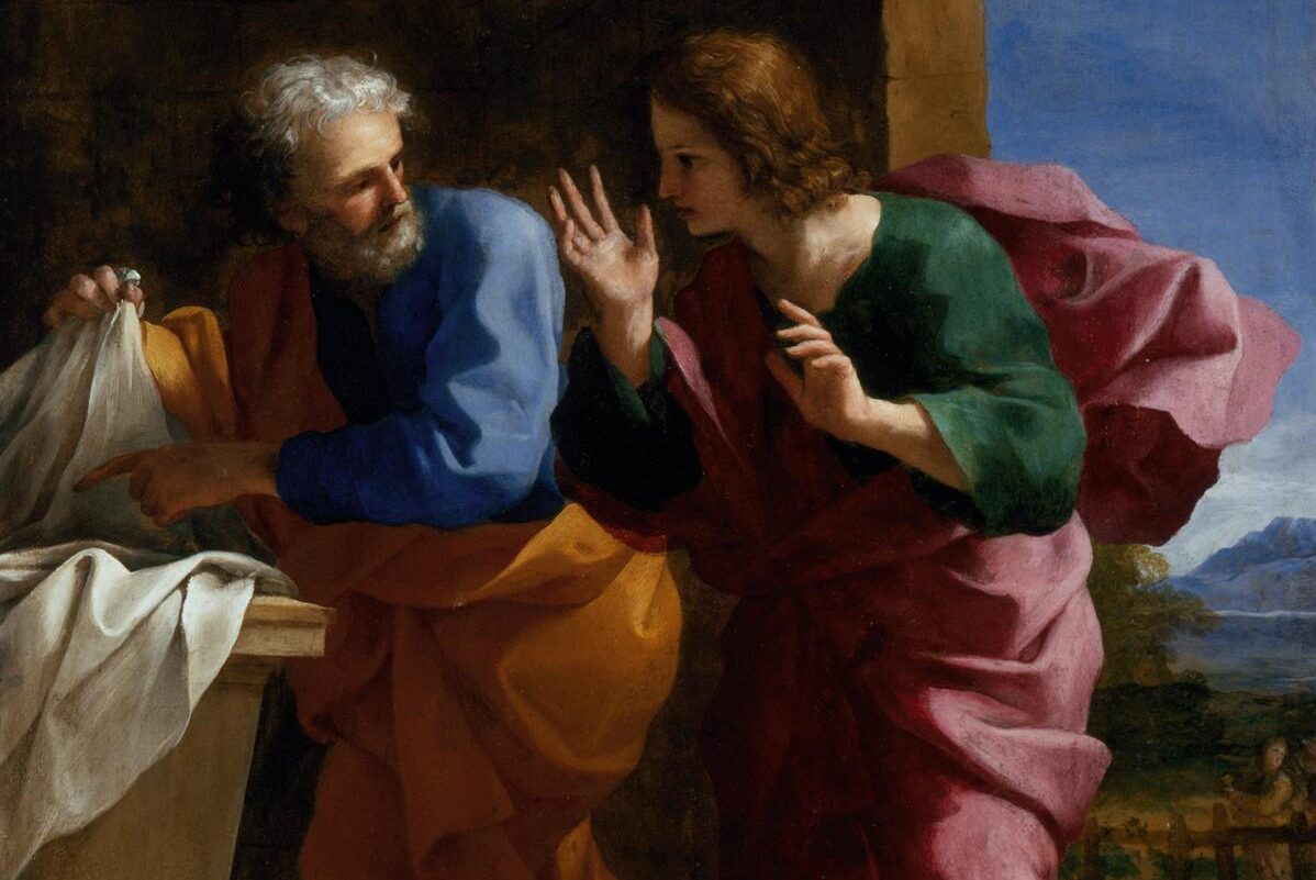 «Men mens hun stod og gråt, bøyde hun seg inn i graven og fikk se to engler i hvite klær.» (Joh 20,11-12)